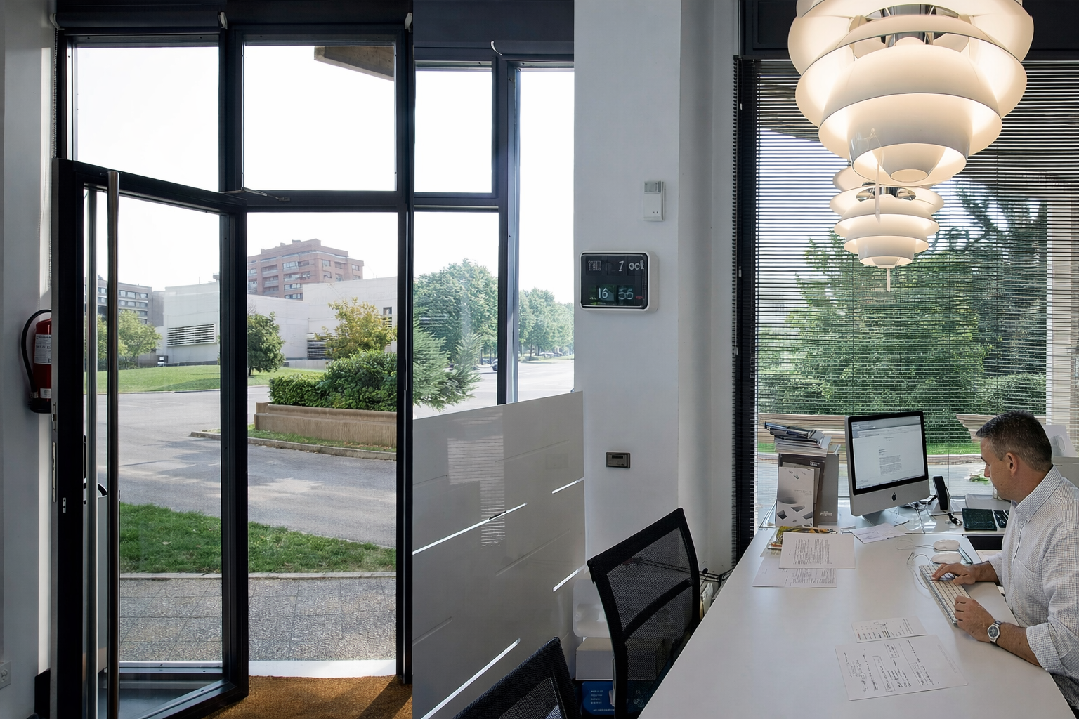 Nuestro showroom se ubica en un luminoso espacio dentro de la Torre de Erroz, un edificio singular diseñado por los arquitectos Fernando Redón Huici y Javier Guibert Tabar. La arquitectura del edificio, marcada por la claridad, la elegancia y el protagonismo de la luz natural, conecta de forma lógica con nuestra manera de entender el interiorismo y el diseño contemporáneo.